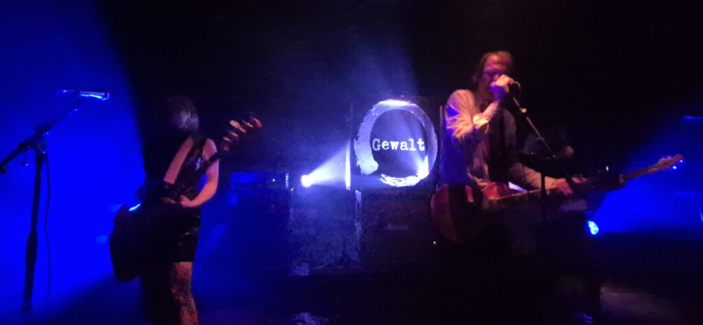 Als Vorband trat die Berliner Gruppe Gewalt auf – ein mutige aber auch passende Wahl. Dabei wurden im Widerschein einer blauen Rundum-Leuchte über fett-technoid anmutende Beats und schroffe Dröhngitarren Parolen wie „Das neue Gold heißt Pfand!“ und „Ihnen droht Obdachlosigkeit,…Ob-dach-los-ig-keit!“ proklamiert. Zur Einweihung einer Halle deren Geld- und Namensgeber ein multinationaler Versicherungskonzern ist, hatte das natürlich einen gewissen Charme. Für ästhetisch und und musikalisch strenge Konzepte ist ja auch der Protagonist des Abends bekannt.